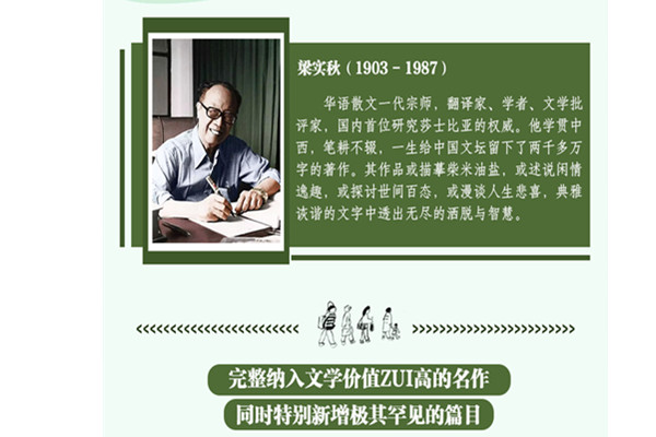 华语散文一代宗师,翻译家、学者、文学批评家,国内首位研究莎士比亚的权威。他学贯中西,笔耕不辍,一生给中国文坛留下了两千多万字的著作。其作品或描摹柴米油盐,或述说闲情逸趣,或探讨世间百态,或漫谈人生悲喜,典雅诙谐的文字中透出无尽的洒脱与智慧。