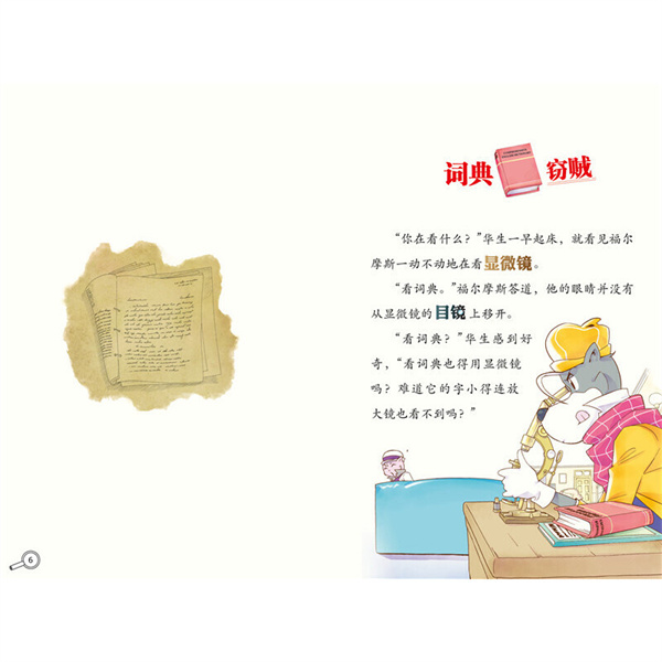 《大侦探福尔摩斯》系列全球销量超过1000万册,曾获中国香港“小学生爱书籍”奖、“小学组教师推荐好读”奖。 1.适合小学生阅读的文字表达,提升语文阅读能力。 用易读的篇幅和语言,传达经典的原味和精髓,使小学生可以无障碍地阅读经典,在有限的阅读水平下也能享受阅读的快感,感受经典魅力。 2.极具知识性和思考性的探案情节,萌发求知的兴趣,点燃探索的激情。 把科学知识融入故事中,情节上亦有极强的代入感,使阅读成为参与分析、判断、推理的解谜过程,小读者在阅读中不仅实现了英雄探险般的传统愿望,更易生发出对知识和理想的无限崇敬。 3.传神的人物形象,专属于小学生的福尔摩斯故事。 把整个动物世界搬了过来,福尔摩斯变成一只拟人化的狗、华生变成了猫,苏格兰场的警探变成了大猩猩和狐狸……所有的角色瞬间清晰了,不再是一个个冗长难记的外国人名字;甚至角色的性格也悄然鲜明起来,令人深思和着迷。