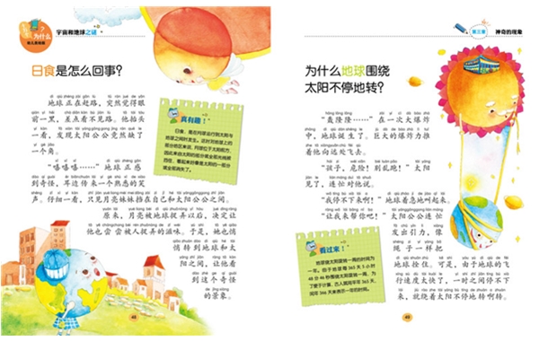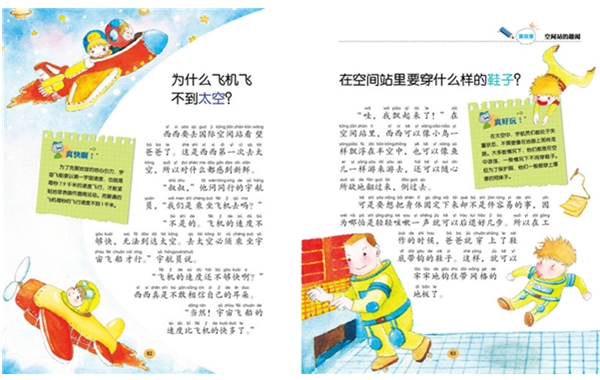 这套书编得很别致,每一个知识点,其实都是用三个内容来表达的:一是童话故事,二是图画,三是一个知识点提示,它们有机组合,形成了这套书独有风格。很多科普读物都是按照某一个科学主题来编写科学小品文的,但这套书都是用童话来传达知识的。它们生动有趣,文字精炼、活泼,有利于父母朗读和讲解。值得一提的是,这套书的编排方式新颖独特,每册都分四个篇章,阅读起来更方便,是一套亲子共读的趣味知识图书。