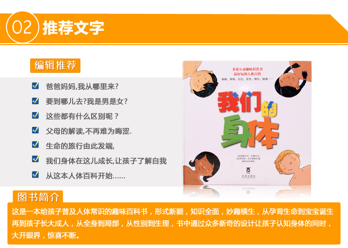 ★知识内容丰富,深入浅出:信息质量高,信息含量极大,符合儿童接受知识深度和数量多少的科学规律,从生命的开始,到宝宝的出生、我们的肌肉、心脏、血液、消化系统还有男孩、女孩身体间不仅有很大的区别,也有很多相似的地方哦。