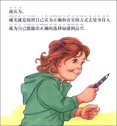 记得第一次看到这套书的时候,我并没有太多的惊喜,因为它的外观比起其他儿童图书来说,似乎显得有些太“教科书”化,不是那么养眼、新潮。但翻开书,读了内容后,我立即就被打动了。风格非常平实,文字部分的讲述理性而清晰,插画则是一个个生动的实例,很有感染力。每册书一个主题,涉及的内容非常全面:怎样养成良好的礼貌习惯和学习习惯?怎样培养坚持不懈做事的品质?怎样和别人和平友好地相处?怎样管理自己的情绪?怎样保护自己?……涵盖了学习方法指导、人格塑造、品质培养、人际交往、安全教育等。更难得的是,每本书后都附有巩固所学内容的实践操作和互动游戏设计,步骤详细,目标明确,可操作性强,对中国的家长和幼儿园老师来说,这样的书在中国儿童教育图书市场上是难得一见的。后来我听说,这套书在美国属于幼儿园和家庭必备图书,就连街角旮旯的独立小书店中都可以找到该书的身影,其影响力可见一斑。