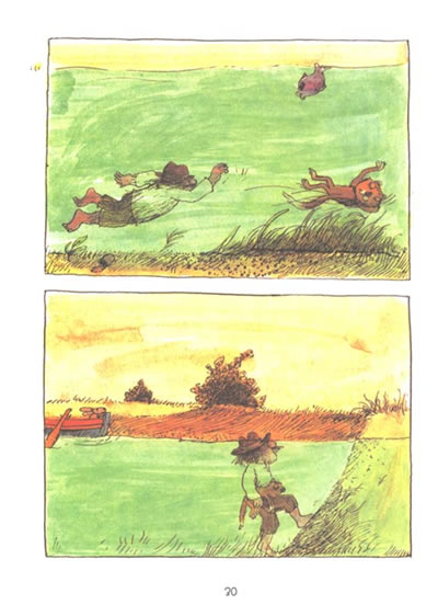 这个叫做雅诺什的德国老头子,他戴的草帽比扑扑夫要大,长的胡子比扑扑夫要白,人们说他自写自画过280来个给孩子的故事。在另一个故事里他说,“对一个梦来说,这些内容的确太多了”。那么对一个童年来说,这些故事的确太丰富了。你看,他亲切又狡黠地冲着你笑,好像他知道孩子们在童年里玩的一切小把戏。