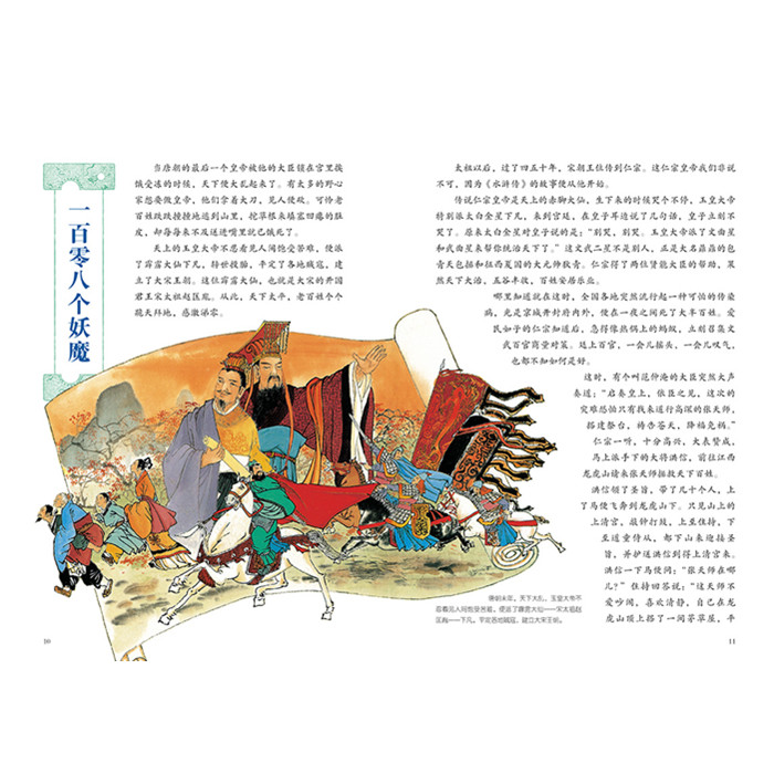 小说虽然是“小道”,却也是通往传统文化的一条路径。为使孩子们看懂门道,每本书都设置“你知道吗”小栏目,和孩子们探讨文化典故、历史人物、名胜古迹、风俗人情……每本书都有一个大拉页,围绕名著的背景展开话题,通古博今,拓展孩子的人文视野。