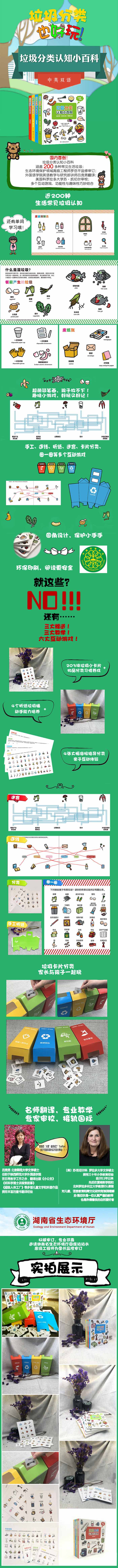 在人类社会发展的同时,地球上的资源却在日益减少,环境也遭到了破坏。如今全球兴起了“绿色”浪潮,绿色化运动在各个领域渗透,对于孩子我们应把握好环保理念的教育和引导,督促孩子环保行为习惯的养成。《垃圾分类认知小百科》丛书共4册,采用生动有趣的卡通图鉴形式,并附有中英双语,还可利用标签管理法快速查找;向孩子介绍了垃圾分类的实用方法,帮助孩子培养变废为宝,对垃圾说“不”的好习惯。针对日常生活中常见的300种物品,如电池、塑料瓶、硅胶手机壳、计算器、手机、塑料纽扣、化妆品空瓶等,这套书对其按可回收垃圾、湿垃圾/厨余垃圾/易腐垃圾、干垃圾/其他垃圾、有害垃圾进行归类,并逐一作出注解,书后还附有手工制作等丰富栏目。此本主题为“可回收垃圾”,包括废纸张、废塑料、废玻璃制品、废金属、废织物和其他等等。