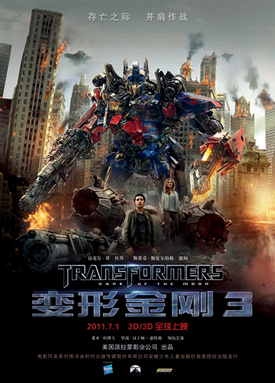 《变形金刚3:月黑之时》是《变形金刚》系列电影的第三部。在第三集中,擎天柱将率领着“汽车人”继续与第二集失败后卷土重来的“霸天虎”作战。汽车人的飞船方舟号坠落月球并被登月宇航员发现,而地球人隐瞒的真相在若干年后成为霸天虎大举入侵地球的契机。大量霸天虎机器人从太空桥跳跃入侵地球,汽车人与地球人联手拼死抵抗霸天虎。《变形金刚3:月黑之时》将是迈克尔·贝执导的变形金刚真人电影系列的最后一部,影片以2D、3D形式公映。