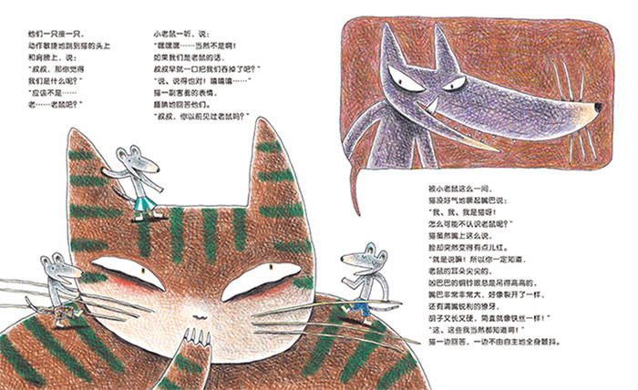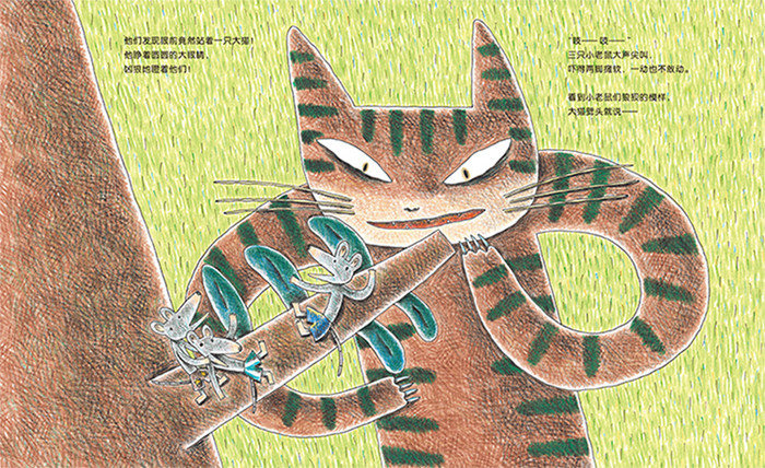 这是一本表现爱让敌人变为朋友、猫和小老鼠跨界友谊的故事。三只小老鼠玩耍时,遇到了一只大猫。但是这只大猫竟然不知道老鼠长什么样子,而且对这三只小老鼠充满了好奇。小老鼠灵机一动,开始捉弄起大猫来。然而一个意外的小插曲,竟让对方看到了彼此善良有爱的内心……