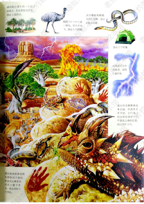 细节探幽——本丛书精选2000余种动物品种,以纤毫毕现描画手法逐一写实呈现,并对4000余项自然风物、人文知识逐一讲解,剖析图画细节读,细察幽微点滴,以此帮助小读者拓展科学知识,提升专注力。