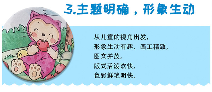 中英文双语阅读,有效提高宝宝双语学习兴趣,文字简单易懂,也很适合亲子阅读,卡通的配套插图,搭配文字更具可读性,颜色鲜艳,吸引孩子阅读兴趣。