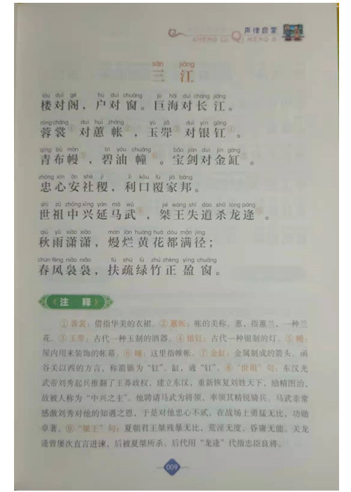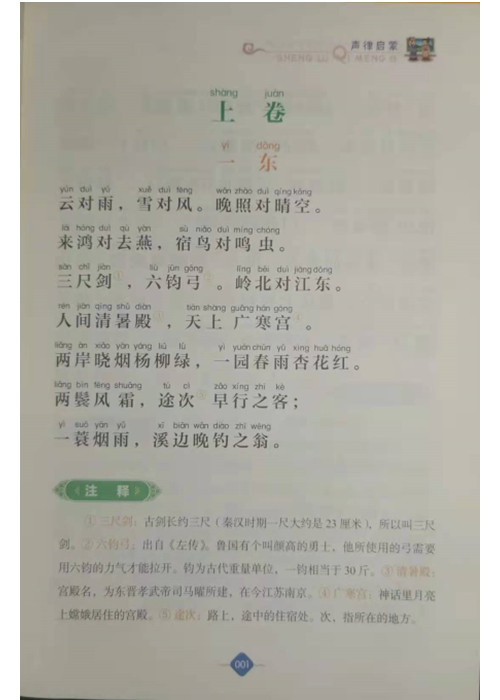 这套“影响孩子一生的国学启蒙经典”精选12部国学精华,涵盖蒙学经典、诗歌、成语、儒家著作等,均参考权威版本,并用精确注释、趣味故事、精美图片全新诠释,带领孩子充分领会和继承优秀的文化传统。千锤百炼的名言警句,朗朗上口的音韵之美,博大精深的思想内涵,让孩子们终生铭记、受益永远。本套丛书旨在加深孩子对中国古典文化的了解,对他们心智的成长和性格的形成起到积极的作用。与此同时,这套书在装帧形式上精致耐用,各个栏目的设置生动活泼,插图精美,可以充分调动孩子阅读的积极性。《声律启蒙》可以帮助儿童掌握声韵格律、训练作诗对句。这本书内容丰富,包含天文、地理、花木、鸟兽、人物、器物等方面,用典恰当,体例严谨。全书按韵排列,从单字对到双字对、三字对、五字对、七字对、十一字对,对仗工整,平仄和谐,读起来朗朗上口。为了帮助小读者更好地理解这部声律著作,书中不仅对原文中的生僻字词作了注释,还配以精美的插图,让小读者不仅可以增长知识,还能充分享受阅读的乐趣。