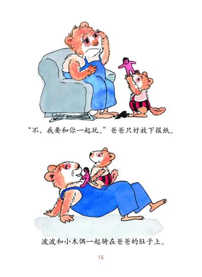 正是基于这个原因,见到这套来自德国百年老社鲁沃尔特出版社出版的《小睡熊》的故事,我为之心动,那些充满稚气的插图告诉我,在每一个小故事的结尾,作者都别具匠心的设计成了波波的入睡,亲切而温暖。我终于明白了,为什么这套书能在德国畅销不衰,看来,无论是来自地球哪一边的孩子都一样,都不太爱睡觉。我想,让“小睡熊波波”来到中国吧,来到我们的孩子中间,让波波爱睡觉的好习惯也传染给他们一点。呵呵!