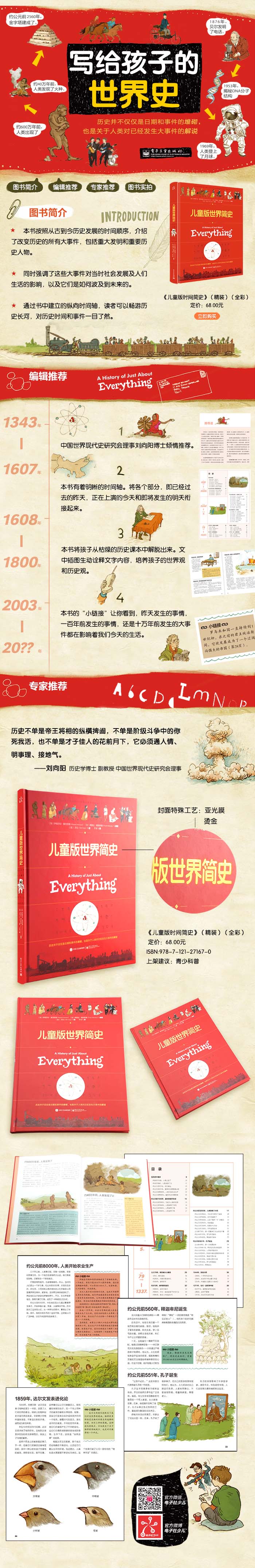 本书按照从古到今历史发展的时间顺序,介绍了改变历史的所有大事件,且包括重大发明和重要历史人物。同时强调了这些大事件对当时社会发展及人们生活的影响,以及它们是如何波及到未来的。本书建立了一个精细的纵向时间轴,让读者对历史时间和事件一目了然。通过书中建立的时间轴,读者可以畅游历史长河,并将昨天,正在上演的今天和即将发生的明天衔接起来。