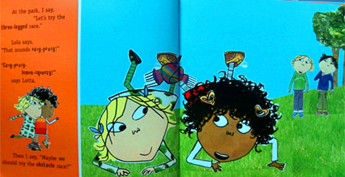 Itas Field Day at Charlie and Lolaas school and each studentis allowed to choose one activity in which to participate. Charlie,Marv, and Lotta all quickly find activities that theyare good at,but Lola struggles to find one to suit her. Lola eventually choosesthe egg-and-spoon race and succeeds at it by really, reallyconcentrating.