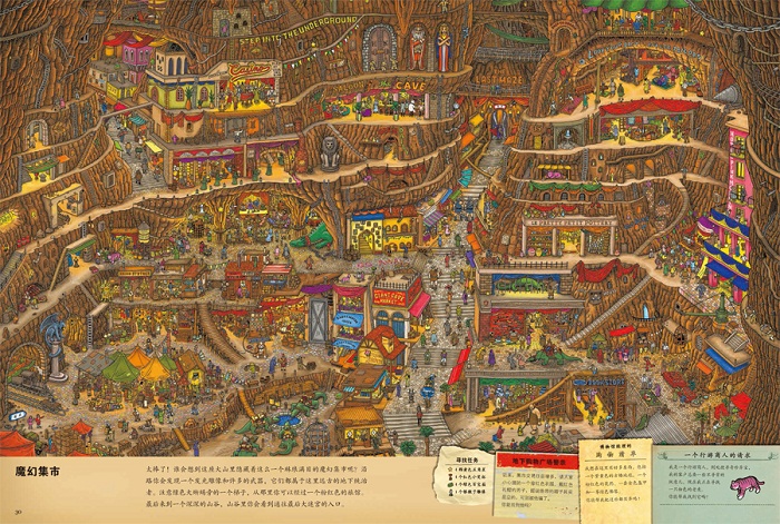 ★国际知名插画团队IC4DESIGN神级插画,其风趣的画风,叙事性的画面内容以及无比精致的细节表现给人深刻印象,比《威利在哪里》更丰富,更考验眼力。