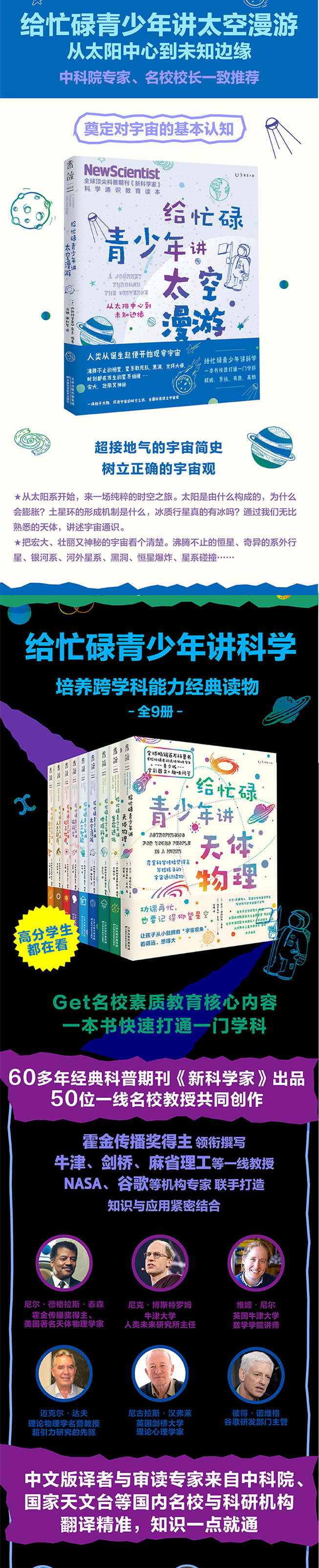 一场始于太阳、环游宇宙的时空之旅。宇宙学专家导游,奠定你对宇宙的基本认知。从太阳开始,包括地球在内的八大行星各有怎样的不同;与我们朝夕相伴的月球有着怎样的秘密;太阳系之外的浩瀚星空中,数不尽的亿万星辰是怎样的存在,宇宙的边界又在哪里……太阳系中数百个光怪陆离的小世界、沸腾不止的恒星、奇异的系外行星、银河系、河外星系、黑洞、恒星爆炸、星系碰撞……囊括所有关于宇宙的***常识。