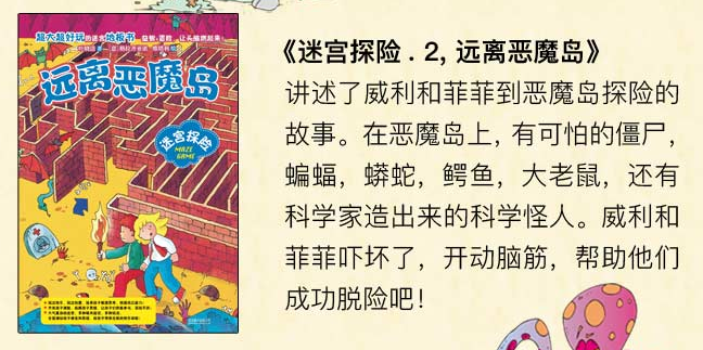 讲述了威利和菲菲到恶魔岛探险的故事。在恶魔岛上,有可怕的僵尸,蝙蝠,蟒蛇,鳄鱼,大老鼠,还有科学家造出来的科学怪人。威利和菲菲吓坏了,开动脑筋,帮助他们成功脱险吧!