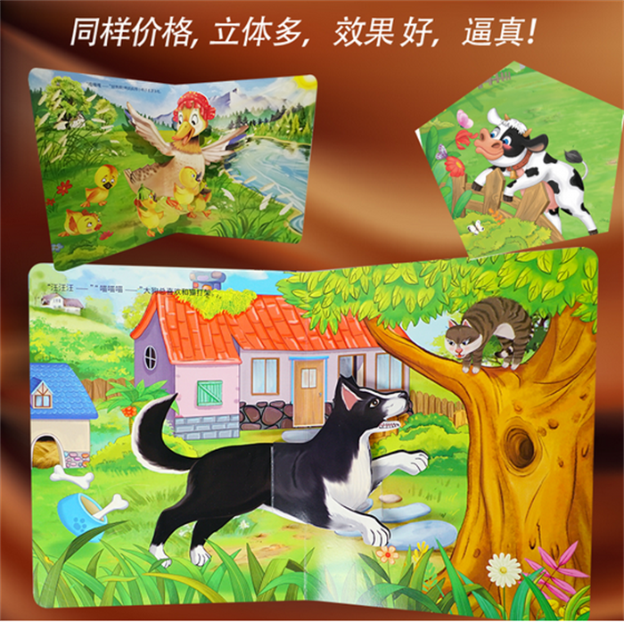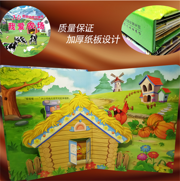 《我爱农场》是一本立体认知书。翻开这本书,小读者们将会有身临其境的感觉,书中的场景丰富多彩,而动物形象则几乎都被做成立体的,书中有爱吃虫子的公鸡、正在埋头吃草的奶牛、正在做游戏的小狗和小猫、爱睡懒觉的小猪、正成群结队地在山坡上散步的绵羊以及在水中自由自在地游来游去的小鸭子……这是一本能玩、能看、能触摸、能学习的3D立体书,它将带领孩子们进入一个奇妙的世界,借由这本书,孩子们能够在了解农场相关知识的同时,提升对于阅读的兴趣和空间思维能力,激发想象力。
