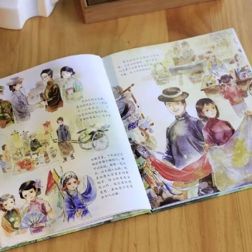 精心手绘创作一卷卷水彩图画,再现文中的风土人情,极富情趣和感染力,典丽堂皇、幽闲清妙的京城古韵令人神往。