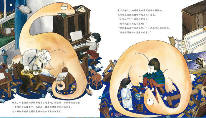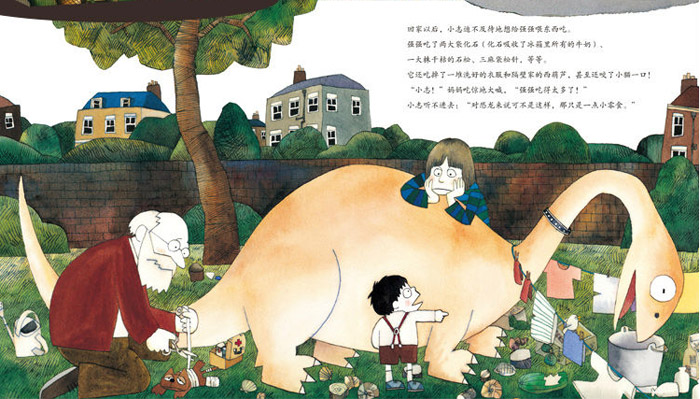 这里有天马行空的想象力,充满稚气又展现功底的插画,有趣的故事情节,还有孩子爱的恐龙!