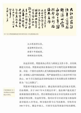 在填写大学入校表格中出生日期一栏时,周恩来写道:那是在“民国成立之前的第十三年”——一个令勤劳的中国人民渴望已久的共和国,周为了巩固这个共和国曾贡献了自己的力量。周恩来出生时,一个旧的世纪正在走向死亡,因此,
