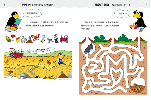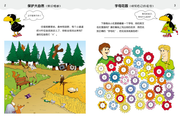 12大主题,带给孩子全面的常识启蒙。认识自然与社会,是孩子成长的必需。本书将购物、农场、动物、工作等常识巧妙融入题目与画面中,让孩子在做题过程中了解日常的薯条与面包来自于何处,钱的用途及取钱设施,怎样过马路才是最安全的,不同的职业分别对应着怎样的生活,等等。
