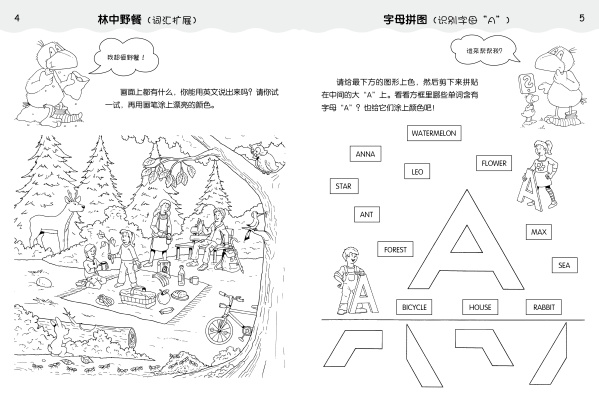 趣味十足,贴近幼儿的认知心理。3-6岁孩子的早期阅读以读图为主,本书在绚丽的彩图之外,还有相当篇幅的黑白插图可供孩子做完练习后涂色,激发其绘画兴趣,提升其动手能力。除此之外,还有找不同、卡片接龙、九宫格游戏、剪贴明信片等丰富的题型,让孩子的学习灵活而充满乐趣。值得一提的是,本书还有调皮的花袜子小乌鸦全程陪伴,在开篇调侃逗乐,让学习更加轻松。