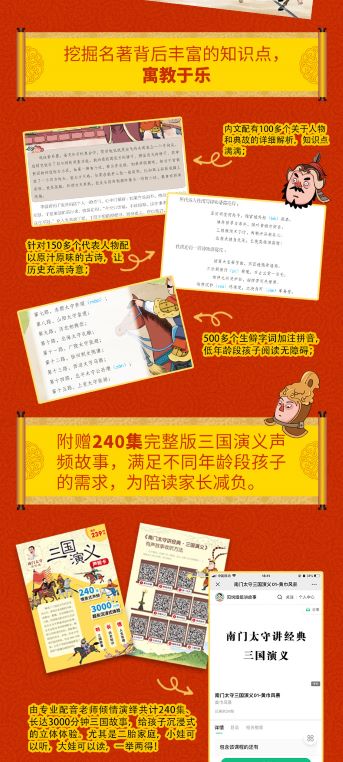 “三国”是中国历史上一个受关注的热度持续不减的时代。《三国演义》,全名《三国志通俗演义》,是晋代史官陈寿所著《三国志》的通俗演义小说,在元末明初,大约十四世纪,罗贯中依据正史《三国志》,结合讲史话本、笔记小说、民间故事甚或稗官野史,把《三国志》这样严肃、枯燥、一般人难以读懂的正史,以小说的方式,重新创作成孺子也能读懂的恢宏壮阔、曲折生动的通俗历史演义小说。