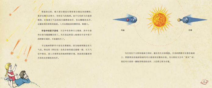 你知道什么是行星,恒星,超新星吗?这些天体是由什么构成的?它们靠什么存活?为什么会出现日食和月食?为什么从“地心说”到“日心说”的提出人类用了近1400年的时间?你知道吗?其实恒星也像人类一样有出生衰亡?如果太阳有南瓜那么大,那地球、月亮又有多大呢?