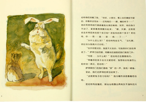若伯特是一只老兔子,她收养了一个孩子——“我”。所有的亲友都惧怕“我”,想把“我”赶出这篇属于兔子的树林,唯一对“我”不离不弃的,就是若伯特——那只又老又丑又粗鲁的疯兔子。长大的“我”必须面对真实的自己,回到那片高高的充满危险的山崖,陪“我”上路的,仍然只有若伯特。