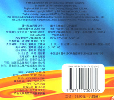 游戏时间到了! 本图书获得2007~2008年度最佳创意少儿图书奖,小巧的开本,保留大虫子的力图制作效果,更适合宝宝翻阅,培养学习主动性;绚丽的色彩,三维立体图像,给宝宝最大的视觉冲击力,刺激宝宝视觉能力发展;朗朗上口的儿歌,便于宝宝背诵记忆,中英文双语对照,让孩子在自由轻松的学习环境中接触英语,开发语言潜能内容简介 小虫子们平时的生活是怎样的呢?蚂蚁、甲壳虫、蜘蛛,还有小蜜蜂,他们的生活比看上去有趣多了!虫虫们多姿多彩的生活等着你来了解!