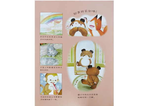 水里的倒影,雨后的彩虹,光和影始终伴随着我们左右。这本绘本讲述了各种光线反射和折射的奇妙现象,跟着胖熊点点和狐狸小皮一起照照镜子,观察一下自然界中美妙的光影变化吧!