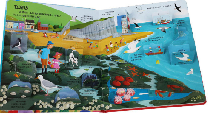 翻翻页的有趣形式为小朋友详细介绍了关于海洋的各种知识,包括海洋的整体概况、五颜六色的珊瑚礁、海底森林、海洋动物等,通过这些内容让孩子们深入了解海洋。书中简洁明了的文字,幽默灵动的画风,各种精心设计的翻翻页、拉拉、转盘,特别符合低龄段小朋友的认知特点。不仅能让小朋友轻松学习各种海洋知识,还能让小朋友在一个个小互动中锻炼小指头的灵活性,这对于触觉敏感期的小朋友来说非常有益处。