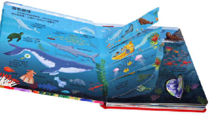 l 大折页、拉拉、转盘、62张翻翻页让小朋友在不断探索中掌握丰富的海洋知识;