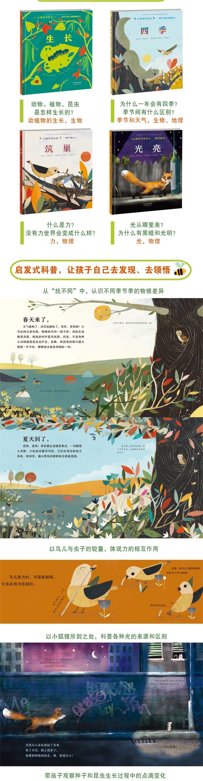 鸟儿找寻了好多树枝。 它要做什么?又在等待什么? 和忙碌的鸟儿一起,发现力的神奇。 《筑巢/大师科学绘本》用小鸟筑巢的故事讲述了力学的知识,包括重力、拉力、推力、重量等等,画面直观,内容易懂。