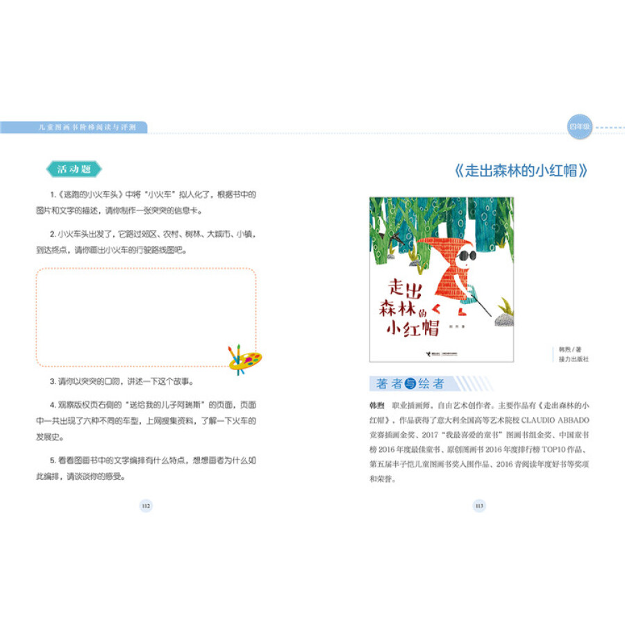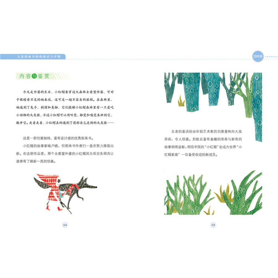 (2)功能性(阅读指导性):本书系在世界范围内精选120本经典图画书,按照年级分册,并且每本书配以精彩的内容简介和艺术鉴赏,首先为不同年龄段的孩子解决了“读什么”“怎么读”的问题。同时,独创性地以“活动与评测”为核心单元,精心设置标准化阅读测评题,科学、客观地评价孩子的阅读成效,解决了阅读课程化趋势下“读得怎么样”这一关键问题。