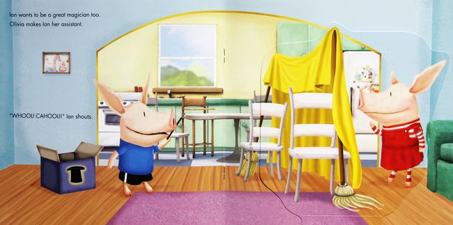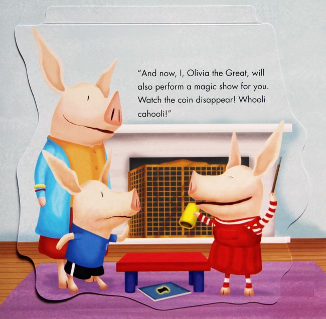 本书可以训练小朋友的想像力或是创造力。 家长可以与小朋友一同利用书籍中翻翻书设计让小朋友一同与Olivia的助手Ian一同寻找消失的Olivia。 Olivia的奶奶来啰,奶奶在Olivia家中时激励Olivia成为魔术师,而他当Olivia的助手说出神奇的咒语时,Olivia不见啰,到底是因为什么原因让我们一起来看看.....