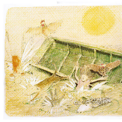 船翻了,但心情并非湿漉漉的,大家一起游到岸边晒太阳,一起穿过草地,一起在甘伯伯家喝茶吃点心聊天,其乐融融。在看书的过程中,我想不到结局会是这样。