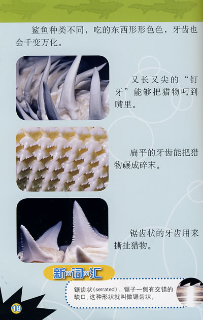 这是一套大朋友为小朋友写作的书。书里的故事有趣而生动,你一定会一口气看下去。特别吸引你的是,书里有许多你从来没有看到过的精彩照片,告诉你大自然的种种秘密。这是一套每一个小朋友都值得看的好书。 著名科普作家 叶永烈 这套图书的每一册,都目录嚼哇幼鲨幼鲨长大啦好大的牙齿想象鲨鱼之最看到了……看不到了鲨鱼出击!人类出击?词汇表