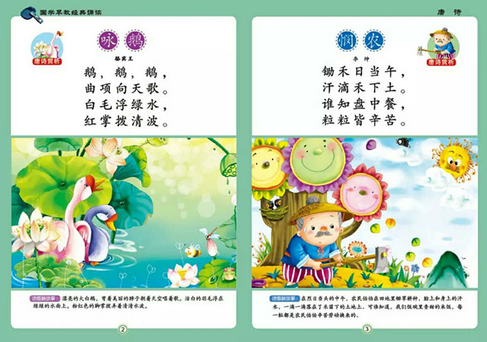 唐诗是中国诗歌的最高代表,古语有云:“熟读唐诗三百首,不会作诗也会吟。”经典唐诗由优美的语言,精妙的韵律编织而成,是古人对大自然、生活、情感的感悟、赞美和歌颂。让孩子从小开始诵读唐诗,可以增强他们的记忆力,使他们受到美的熏陶。本册书收录了适合幼儿诵读的唐诗名篇,每篇唐诗都配有赏析和诗图新故事,用现代的语言深入浅出地为孩子们解读一首首经典诗歌。