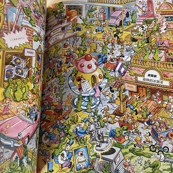 跟随米奇和他的朋友们一起穿越时空去旅行吧!他们遇见了机器人,海盗,外星人,骑士,还有其他许多奇怪的人物呢!书中有9个异常热闹的场景,你能在里面把米奇,米妮,唐老鸭和高飞找出来吗?