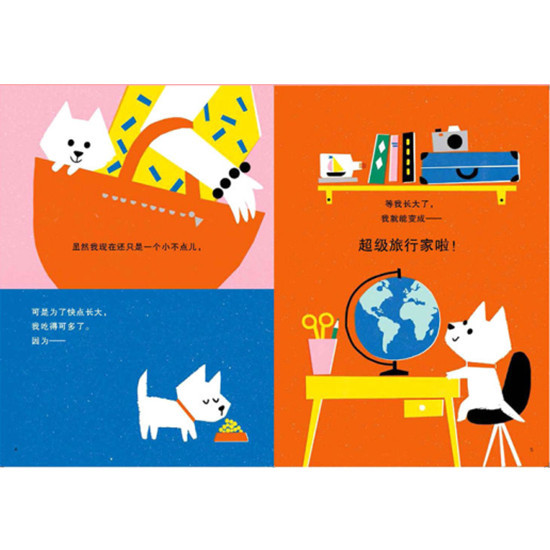 《超级旅行家》是一本关于想象和旅行的引进绘本,故事描述主人公蒙奇渴望快点长大,并在梦中进行了一次世界旅行的奇特经历,这本绘本想象力非常丰富,也非常符合孩子的想象世界。绘本的图画色彩明丽,童趣十足,出现的场景也十分多元:高山与深海、炎热的沙漠与寒冷的北极……而且在场景中的动物各有各的神态,这一幅幅画面让儿童在阅读过程中既能了解不同的地理环境,又能享受艺术的熏陶,同时还能激发幼儿对旅行的想象和向往,对成长充满期待和希望!