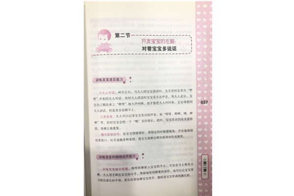 大脑是人类智慧的源头,它分为左脑和右脑,而我们的左脑和右脑是以显著不同的方式行着神奇的工作:左脑的主要功能可分为语言智能、逻辑思维智能、数学智能、自然智能和听觉记忆智能;而右脑的主要功能可分为形象思维智能、空间知觉智能、创造性思维智能、肢体协调智能、人际关系智能和视觉记忆智能。0-1岁是孩子大脑发育的时期。在这一时期发出大脑的主要能力,宝宝的大脑日后才能分化出更多、更复杂的能力。因此,家长应在宝宝大脑定型之前,以轻松、自然的方式,帮助宝宝将左、右脑的各种能力都发出来。