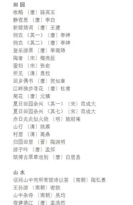 底本采用中华书局精校的通行本。正文原文采用楷体大字,全文注音。每篇诗词附有难字、难词、难句的注释,文采飞扬的大意讲解,并根据《纲要》对不同年龄段学生的要求提出问题,点拨学习要点。