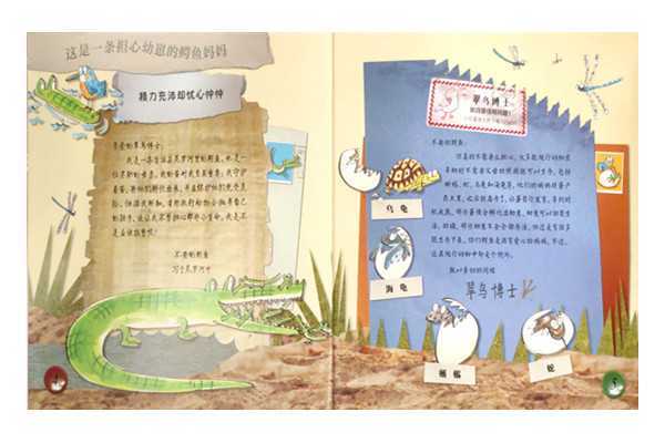 这套书容纳了关于地球、天气、动物、恐龙、爬行动物和微型动物的知识,极为丰富。绘者还别出心裁地使用混合媒材的插画、彩色照片及结合卡通插图的文字,让图书的形式充满趣味,吸引孩子的阅读欲望。