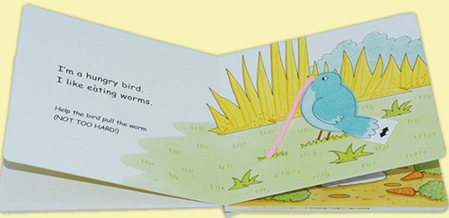 I'm Hungry是一本十分有趣的触摸书、翻翻书和机关书的融合体,书中将五种不同的材料分别放在动物身上,多感官刺激,宝宝边触摸边学习,助力宝宝认知毛毛虫、老鼠、小鸟、小兔子、小猴子、老虎六种动物。