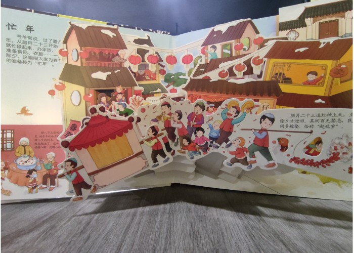 这本立体书时间线为轴:从腊月二十三开始准备过年的各种场景,让孩子感受到浓浓的“年味”,从真实的场景里了解年俗和传统文化。