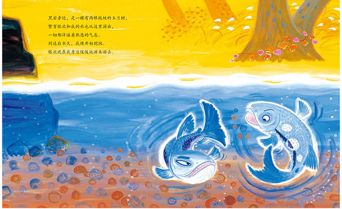 故事的最后不禁让小编眼眶湿润,不是为鲑鱼的离去感到悲伤,而是为鲑鱼实现生命的价值而高兴、为新生命的诞生而欣喜。仔细想来,人的一生又何尝不像鲑鱼一样。幼时无忧无虑地成长,进入社会才突然意识到现实也有残酷的一面,在不断斗争中找到生命的真谛。在这个过程中,有的人找到了指明方向的那座灯塔并奋力前行,希望终有一天能抵达那里;而有的人却永远迷失在了寻找的路途中。如何选择人生、如何坚持信念、如何面对困难,虽然这些问题不是孩子能马上面对的,但却是他们一生中总会经历的。作为家长总想教给孩子所有的经验,为孩子指明人生的道路,殊不知生命的真谛不是耳提面命就能懂的,而需要孩子自己去摸索和感悟。如果您也被故事里奋力前行的鲑鱼感动并有所感悟,那么请将这首鲑鱼们用生命吟唱的歌告诉孩子。如果孩子在成长过程中遇到了困难,他的脑海中能浮现出鲑鱼义无反顾的身影并从中获得勇气,那就是这本书最大的价值所在了。