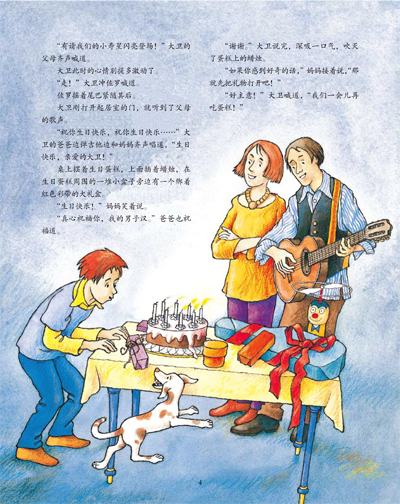 大卫最大的愿望是拥有一把吉他,他想自己能像爸爸一样弹一手好吉他。今天是大卫的8岁生日,他迫不及待地打开礼物盒,看到了一把向往已久的吉他!