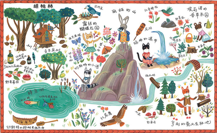 今晚,轮到兔子丽娅来和大家分享她的工作了。大家都很兴奋,除了丽娅,因为她的工作——为胡桃林绘制一幅地图,到现在还没有完成。她难过极了,她的朋友玛格决定陪她一起去完成地图。在朋友们的帮助下,丽娅终于找到了小河的源头,顺着源头,她发现了被她遗漏的那一处地方。于是,地图终于如期完成了!