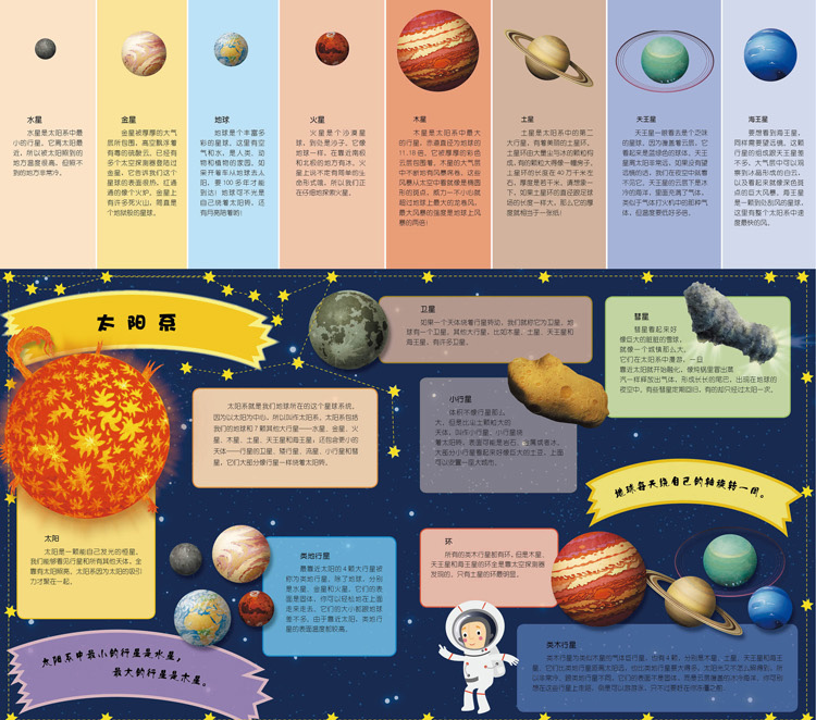 这套探索图册,还可以让孩子在认知世界和太空的基础上,培养孩子的形象思维及空间想象能力。