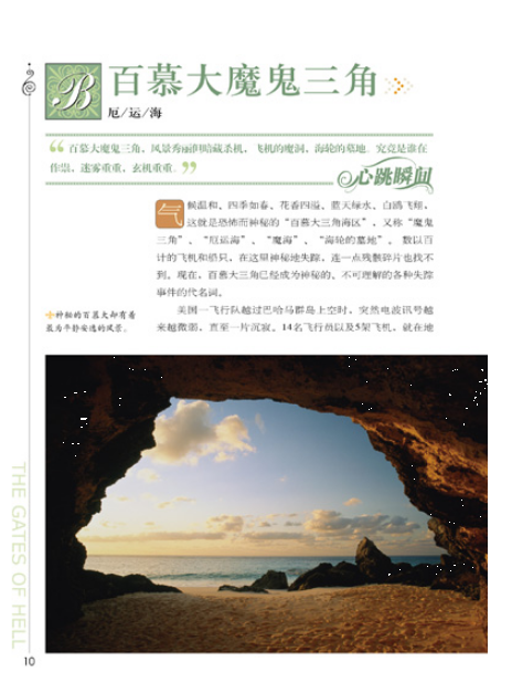 经历了一次次磨难的地球留下了无数难解的谜团,我们无法斩钉截铁地说恐龙已消失,我们畏惧于北纬30度的神秘力量,跪首于已逝亡灵的诅咒,逡巡于史前文明的魔力,困惑于天外来客的来访……人类思维的尽头写满了问号,叩问远古,除却深陷泥沼的各种定理、原理,那些遍布各地的神秘地带仿佛有着无数的欲说还休的话语。四大死亡谷、百慕大、死神岛、巨石阵、秦始皇陵……恐怖、神奇、怪异、迷幻、诡谲……100个神秘地带包罗万象,那些熟悉或者陌生的地方,一次次地激荡着探险者的胸怀。
